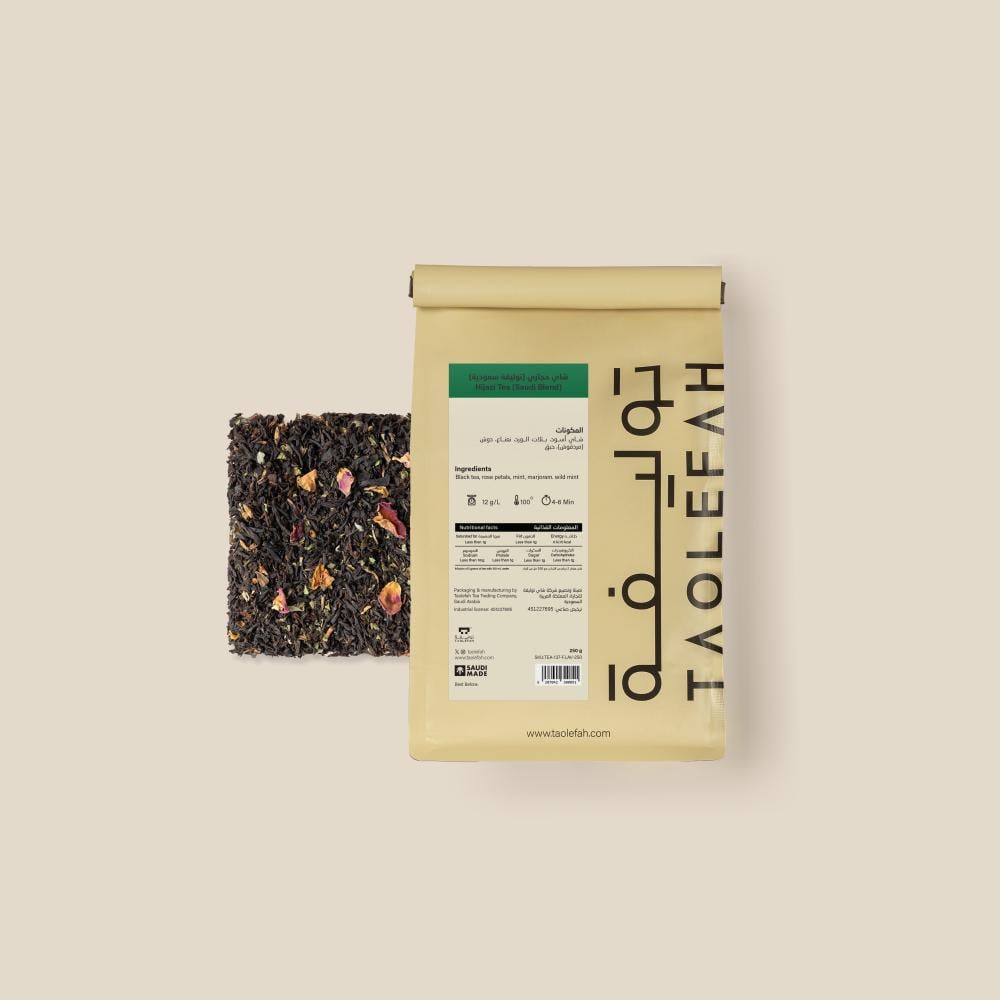 اكتشف عبق التراث السعودي مع التوليفة الحجازية من توليفة، مزيج مستوحى من تقاليد المنطقة الغربية العريقة. هذه التوليفة الفريدة تجمع بين أوراق الشاي الأسود الفاخرة وبتلات الورد العطرية، مع نكهة منعشة من الحبق، النعناع، والدوش (المردقوش)، لتقديم تجربة شاي استثنائية تعبّر عن دفء الضيافة السعودية وجمال التقاليد المحلية.