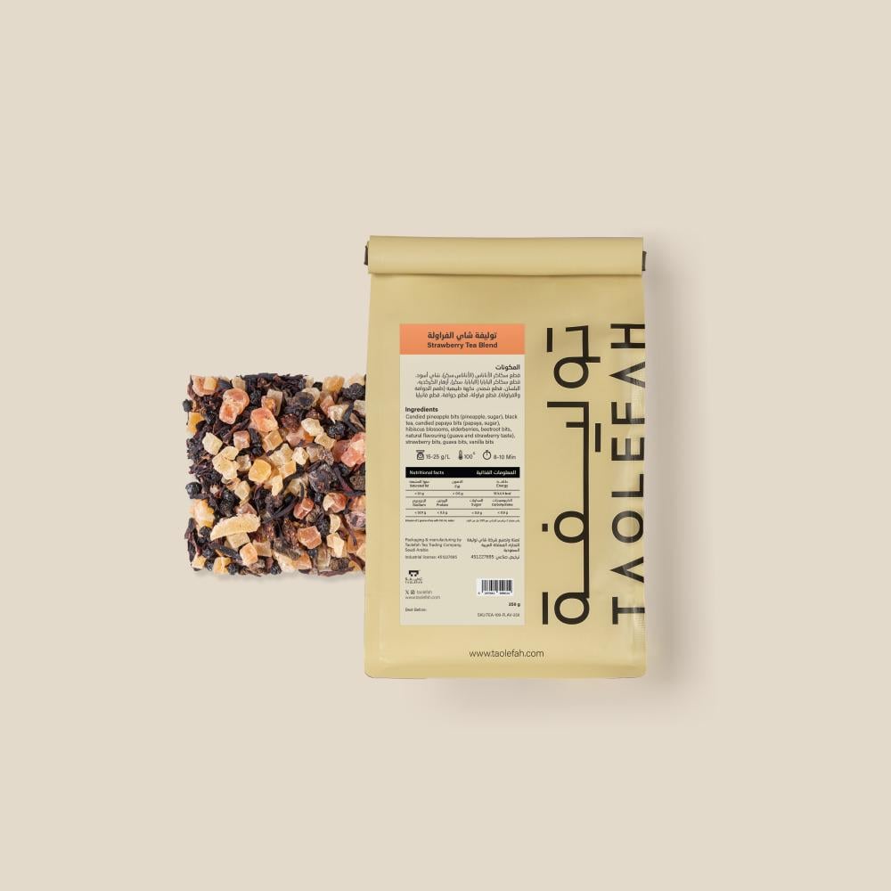 Indulge in a unique experience with the Strawberry Tea Blend, combining pineapple and papaya pieces with the tropical flavors of strawberry and guava. Made from 100% natural ingredients, this tea strikes the perfect balance between sweet and refreshing, thanks to its blend of black tea and aromatic hibiscus flowers.